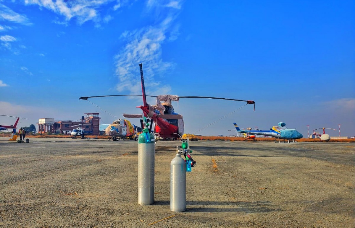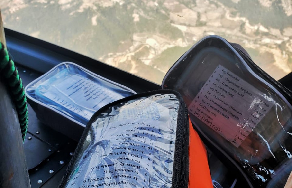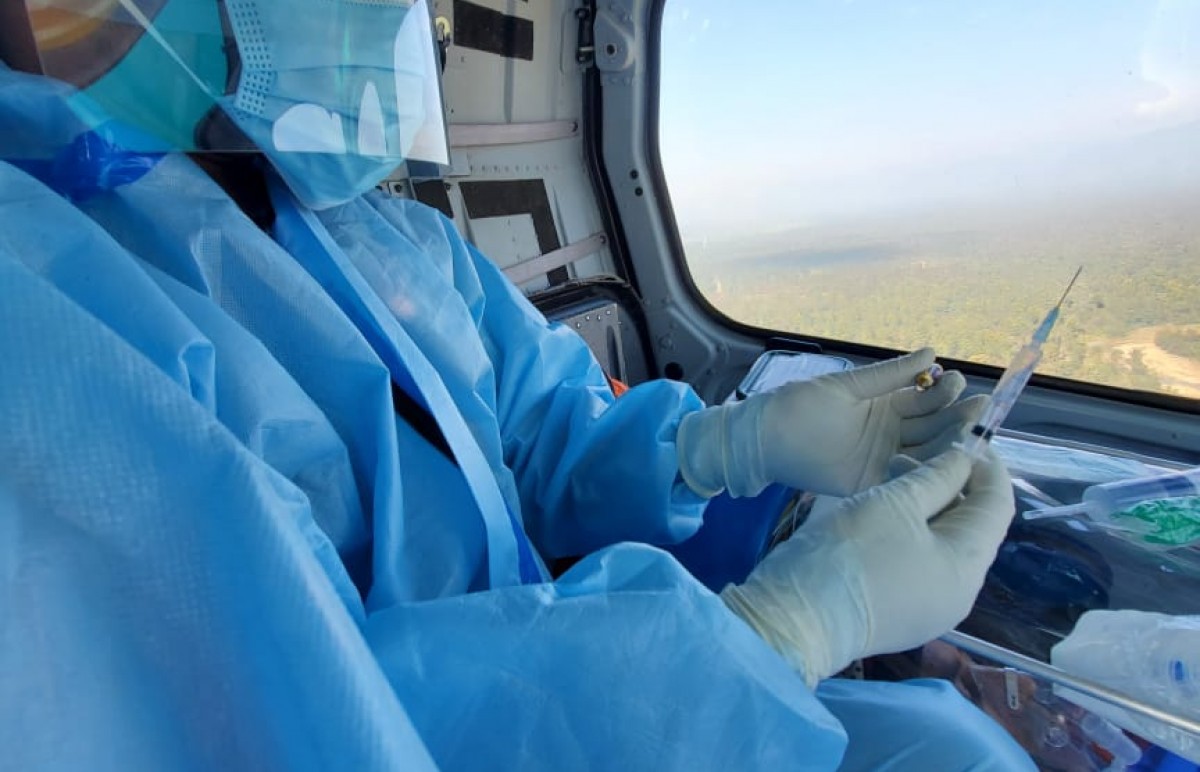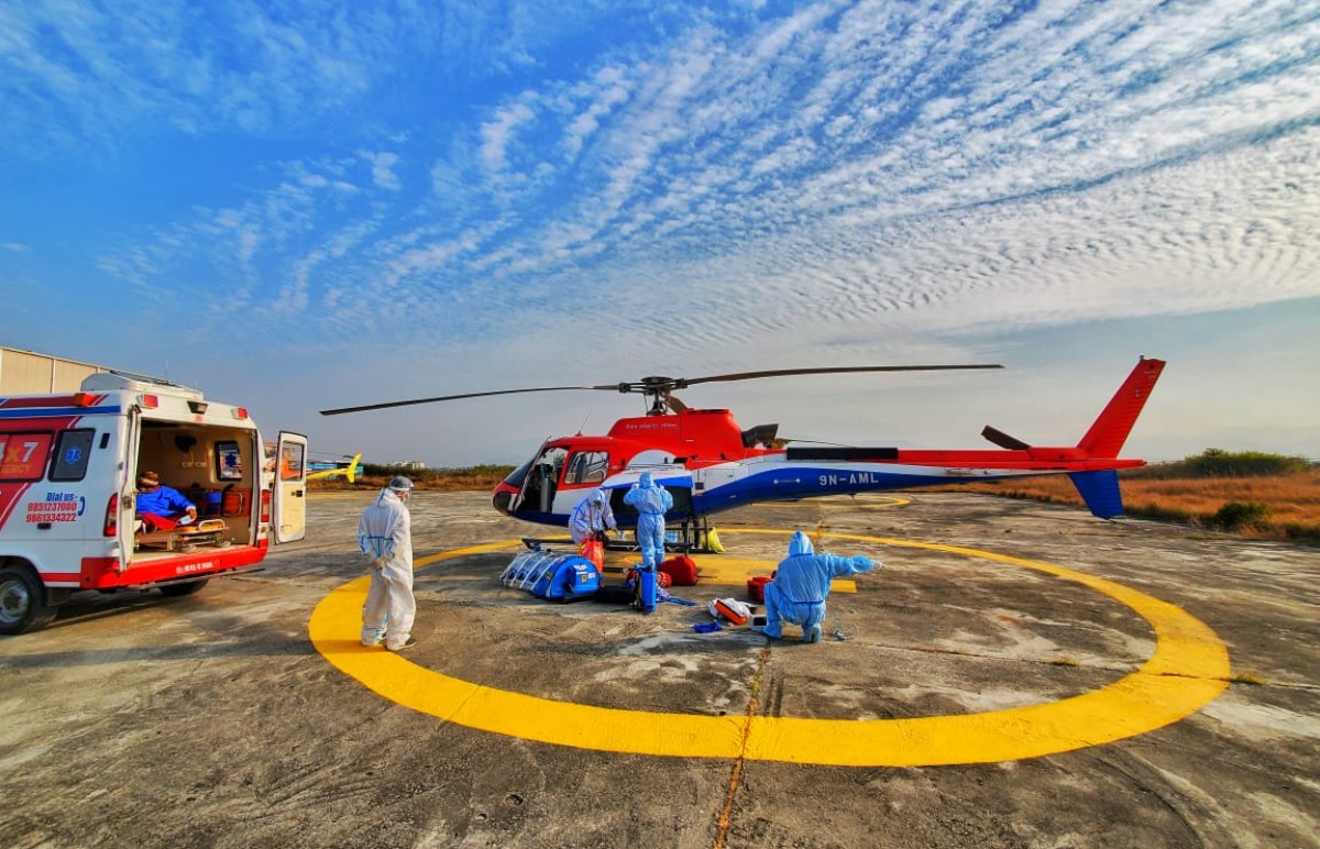 Patient was a recently diagnosed COVID case with multiple underlying co-morbidities. Patient was diagnosed with radiographic moderate severity illness, and was under oxygen via face mask. The 2 hour flight from Kathmandu to Bheri Zonal Hospital Nepalgunj had a stopover at the Nepalgunj Airport for refueling. The trip back with the patient on-board was fortunately uneventful and the patient was successfully handed over to the medical team at Star Hospital.